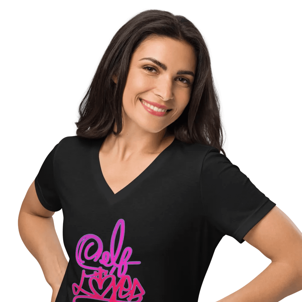 "Self Loved" Freehand Graffiti Style Women's V-Neck Tee